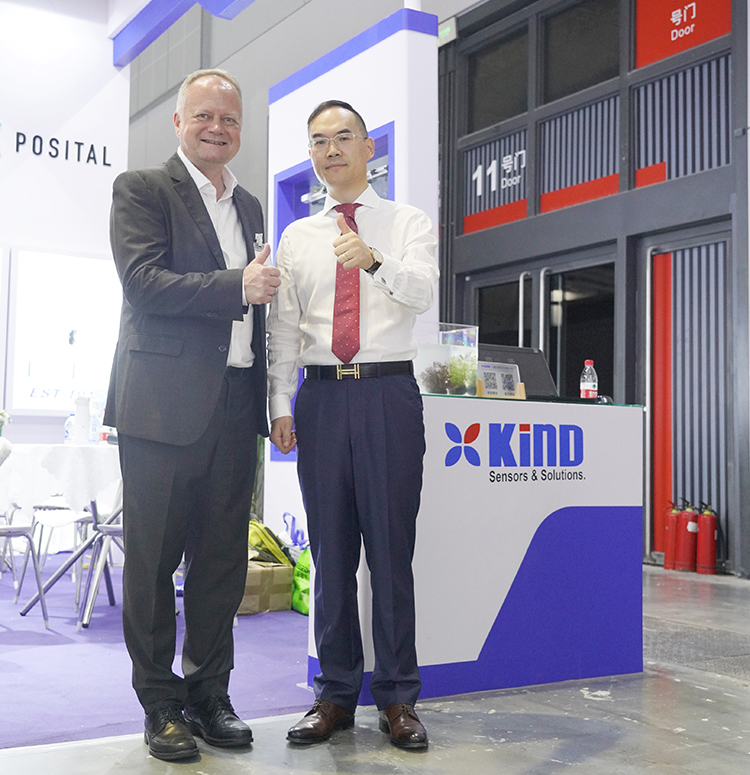 (上圖)POSITAL亞太區(qū)總經(jīng)理Dr.ingo Moench親臨IAS現(xiàn)場(chǎng)與開地電子總經(jīng)理王總合影